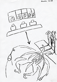 okay crash, pen-and-ink drawings 03.08.1988